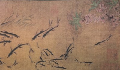 蒋彝(1903-1977)是20世纪中叶最著名的华人英语作家之一,是世界上第一个以熊猫入画的水墨画家。一次偶然的机会,我发现了蒋彝《鱼乐图》与宋朝名画《落花游鱼图》之间的关联。《落花游鱼图》系北宋画家刘寀(生卒年未详)所作。这幅名画现在收藏于圣路易艺术博物馆。据宋代《宣和画谱》记载,刘寀“善画鱼,深得戏广浮深,相忘于江湖之意”。 (详见17版)