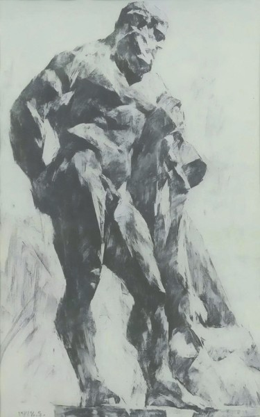 展览从几件赵大钧早期素描开始,这些素描“将线条与具有多种明暗形态的块面结合在一起,不规则的、棱角突出的几何形状是最为显著的特征。”从《被缚的奴隶》《摩西》等素描中,不难看到画家对西方文艺复兴大师的敬意,但与文艺复兴大师不同的是,画家并未选择效仿大师的写实路线,而是以常见于塞尚等现代艺术家作品中的笔法,重新“发现”了这些古典题材。“他用凸出的棱角线强化了‘几何’的视觉”,力士、奴隶、摩西的身体被解构为相互衔接的块面,结构而不是题材本身成为最引人注目的部分。像塞尚一样,借客观物象浓缩而成的几何形体是他研究的焦点。