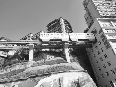 对自然命运的不屈服,带来的是现代与前现代交互融合的巨大落差与碰撞,其背后则是重庆城市景观文化二元性的矛盾共生。重庆的中心城区本来就位于山地之上,又被长江、嘉陵江切割,城市建设用地极度稀缺,迫使城市的功能空间只能垂直叠压。轻轨从居民楼的腹腔穿过、火锅店嵌在桥墩之下、商场屋顶变停车场,这种被迫的立体主义空间运用,天然生成了赛博朋克式的魔幻兴奋点。不过,重庆城建的景观二元性并非割裂的,而是地理与历史合力催生的魔幻与现实的艰难磨合与不断新生。