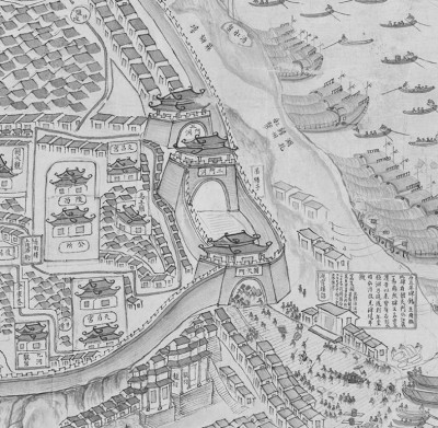 1371年,明军攻下重庆,镇守重庆的明军将领戴鼎在宋元旧城的基础上,主持了大规模的重建与扩建工程,奠定了明清重庆城的“山、水、城”三位一体的基本格局。明清时期,重庆府城的城建与地形的结合达到了极致。城墙如巨龙般盘绕在渝中半岛的山脊上,俯瞰两江。城内道路完全顺应山势,形成无数陡峭的坡坎和曲折的巷道。建筑依山就势,层层叠叠,像洪崖洞这样的吊脚楼在沿江地带尤为普遍。