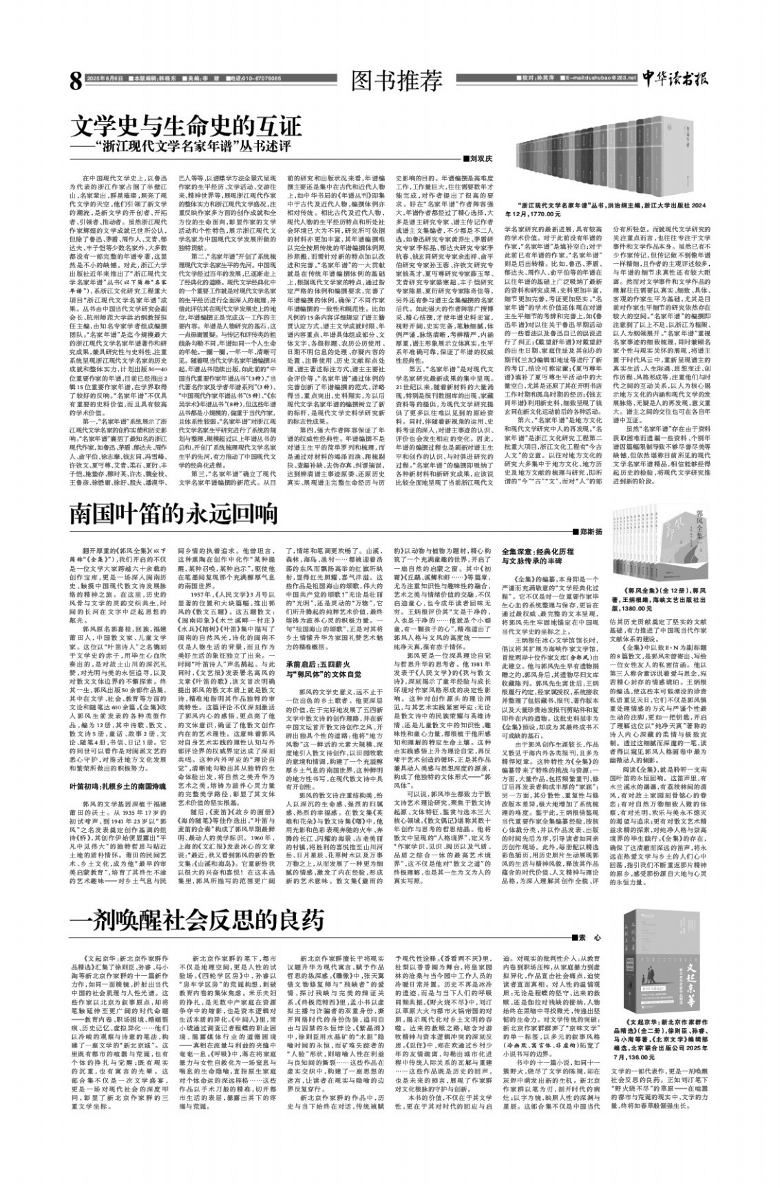 第四,强大作者阵容保证了年谱的权威性经典性。年谱编撰不是对谱主生平的简单罗列和梳理,而是通过对材料的竭泽而渔、爬梳剔抉、查漏补缺、去伪存真、纠谬摘误,达到辨清谱主事迹原委、还原历史真实、展现谱主完整生命经历与历史影响的目的。年谱编撰是高难度工作,工作量巨大,往往需要数年才能完成,对作者提出了很高的要求。好在“名家年谱”作者阵容强大,年谱作者都经过了精心选择,大多是谱主研究专家、谱主传记作者或谱主文集编者,不少都是不二人选,如鲁迅研究专家黄乔生、茅盾研究专家李标晶、郁达夫研究专家李杭春、钱玄同研究专家余连祥、俞平伯研究专家孙玉蓉、许钦文研究专家钱英才、夏丏尊研究专家薛玉琴、艾青研究专家骆寒超、丰子恺研究专家陈星、夏衍研究专家陈奇佳等,另外还有参与谱主全集编撰的名家后代。如此强大的作者阵容广搜博采、精心结撰,才使年谱史料宏富,视野开阔,史实完备,笔触细腻,体例严谨,脉络清晰,考辨精严,内涵厚重,谱主形象展示立体真实,生平系年准确可靠,保证了年谱的权威性经典性。