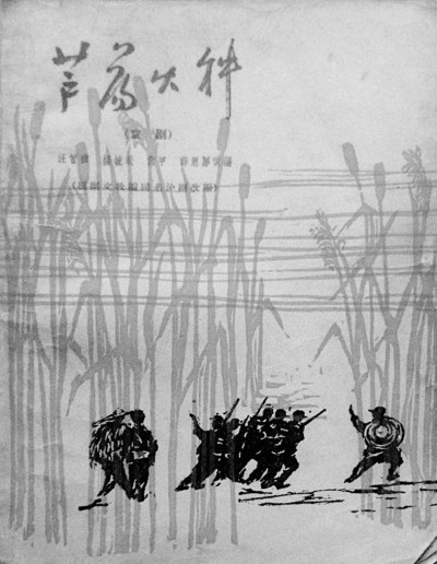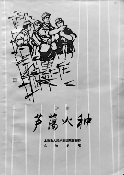 先说沪剧版《芦荡火种》。此书由上海文化出版社于1964年 10月出版,首印一万八千册。封面上标示“上海市人民沪剧团集体创作、文牧执笔”。扉页有“内容提要”,文不长照录如下:“抗日战争时期,我新四军某部转战江南抗击敌人。在一个战役结束以后,部队奉命转移,留下了十八个伤病员。县委将掩护伤病员的任务交给了地下联络员阿庆嫂。阿庆嫂不顾日寇‘扫荡’,在当地老百姓的协助下,机智地将伤病员隐蔽在芦苇荡中,保存了革命火种。日寇勾结‘忠义救国军’大肆搜捕,采取了封锁港口等手段,企图以断粮绝援来困死伤病员。剧本由此展开了一场曲折复杂的斗争,最后这支革命队伍克服了重重困难,深入虎穴,全歼敌人,获得胜利。”剧本从《序幕湖边接应》开始,然后是第一场《军民一家》到第十一场《瓮中捉鳖》,并以五首《芦荡火种选曲》结尾。