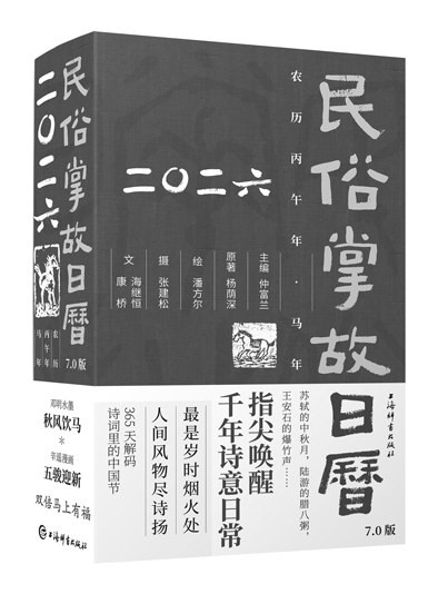在短视频与AI不断冲击、碎片化信息充斥的当下,纸质日历的仪式感,和“日读一诗一俗”的慢节奏,恰恰成为对抗信息洪流、消减精神压力的文化载体。《民俗掌故日历7.0版(2026)》守护的正是这份难能可贵的“日常诗意”,饱含着不可替代的人文温度。现代社会日新月异,科技深刻改变着人们的生活方式,许多几十年前尚存的民俗场景,如今已成追忆,“民俗+诗词”所提供的临场感,对我们理解传统、感知古今,弥足珍贵。
