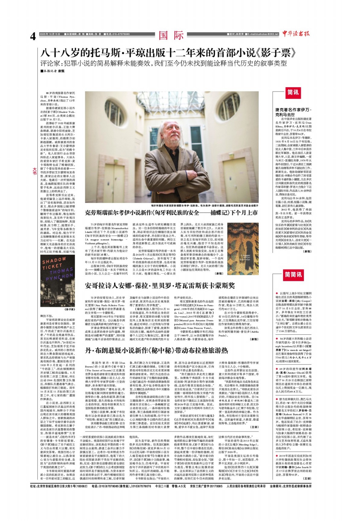 八十八岁的托马斯·平琼出版十二年来的首部小说《影子票》