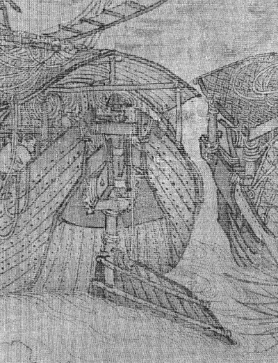 图3:张择端《清明上河图》卷里漕船尾部的可控式升降舵