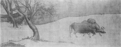 图5:南宋阎次平《四季牧牛图·冬》卷(3绢本淡设色,35.5X89厘米,南京博物院藏)