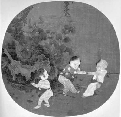 图6:南宋人《秋庭婴戏图》页(绢本设色,23.7X24厘米,故宫博物院藏)