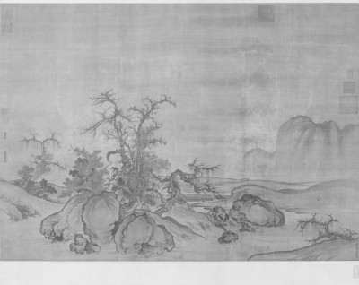 图9:北宋郭熙《窠石平远图》轴( 绢 本 墨 笔,120.8X167.7 厘米,故宫博物院藏)