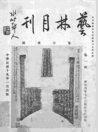 《艺林旬刊》出版了2年,72期。1930年1月,改为《艺林月刊》,连续出版至1942年10月,共118期。《艺林月刊》第一期,仍是水竹邨人题写刊头。《艺林月刊》以“精研古法,博取新知”为宗旨,内容涵盖书画艺术、历代文物、考古发现等,延续旬刊图文并茂的编排方式,为研究民国时期美术史提供了珍贵史料。