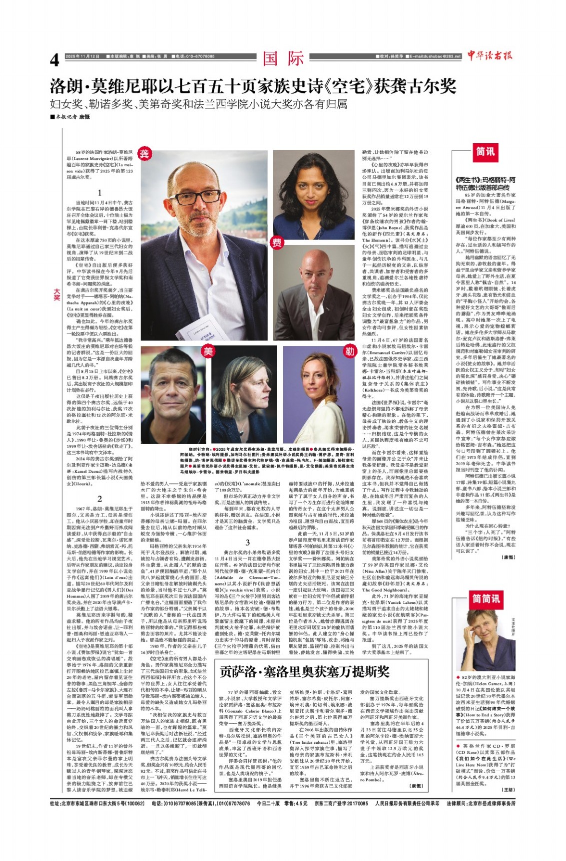 洛朗·莫维尼耶以七百五十页家族史诗《空宅》获龚古尔奖