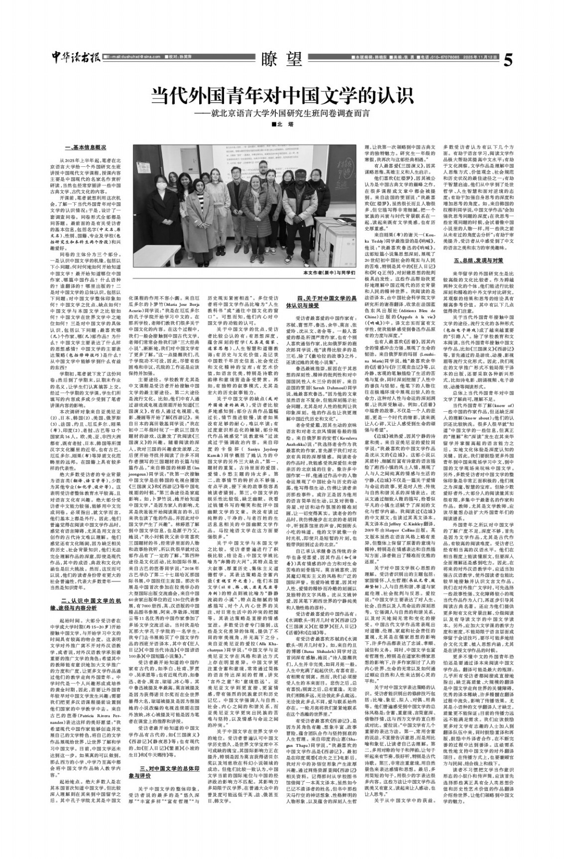 当代外国青年对中国文学的认识