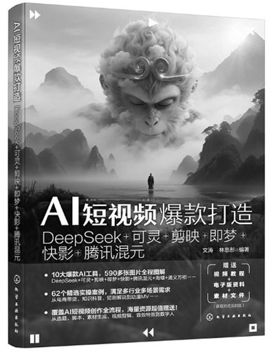 《AI短视频爆款打造:DeepSeek+可灵+ 剪映+即梦+快影+腾讯混元》 文涛、林思彤 编著,化学工业出版社2025 年10月,98.00元 本书作为AI短视频创作领域的实用指南,系统、全面地梳理了从创意构思到成片输出的全流程技术。全书以“理论精讲 实操落地”双轨并行的逻辑架构,通过“入门基础 工具解析 场景实战”三大模块,帮助读者快速掌握AI短视频制作的核心技能。全书共11章,第1章介绍AI短视频创作的零基础入门知识,详细拆解AI短视频创作流程、技术优势与行业挑战,深入浅出地阐述AI在智能剪辑、特效生成、音频优化及数字人应用等关键环节的赋能作用。第2章至第11章重点讲解10款主流工具,形成“创作神器图谱”,每章均包含工具功能解析、操作界面介绍及实战案例,覆盖电商带货、知识科普、娱乐短剧等高频需求场景,帮助读者实现从脚本到成片的全流程闭环,真正做到“学以致用、举一反三”。 |