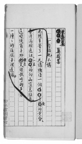 《七子之歌:闻一多新诗集》于2025年9月由海豚出版社出版以后,我发现中国国家图书馆藏有闻一多手稿《獭洲集》。经古籍馆程天舒老师查阅,该稿正是此前“下落不明”的《真我集》。稿本系线装,长23.7厘米,宽13.5厘米。封面右上有“中华民国 年 月”字样;中下为“年级班○○○”,第一个○内有一“闻”字(红色);左上方框内题“獭洲集”(隶体)。内文用纸:双面对折,对折处印有“郭纪云图书馆”6字;绿色方格,竖排,计36页。首页第一行顶格始题“獭洲集”,涂掉后,于其右侧题“厥辞集”,又涂掉。“真我集”题在涂掉的“獭洲集”之下。大概为了美观起见,闻一多没有改动封面上的题名。
