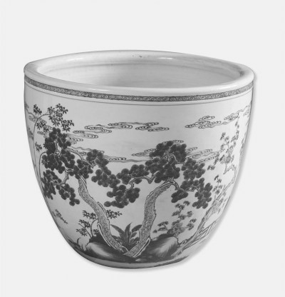 如此,则沃波尔的伦敦寓所里有一个高47厘米、直径55厘米的中国青花瓷缸也就不足为奇了。此缸绘有岁寒三友松竹梅、流云、假山和小桥图案,疏朗美观,很是文雅。沃家拿它当金鱼缸,是室内装饰的一部分。至于金鱼,那是在大约1691年由中国传入英国的稀罕物,半世纪后进入沃家时在社会上仍不多见,仍是堪配国王情妇的宫廷奢侈品,法王路易十五的情人蓬巴杜夫人就曾获赠此物。沃波尔养金鱼是在草莓山的“鄱阳”池里。有年夏天下暴雨,他怕金鱼淹死,竟让人冒雨将其转移到了室内,全然忘了它们是鱼! 他还嘲笑两个潦倒贵族试图把金鱼池里的水抽干,为的是想要看看池底有没有金子。