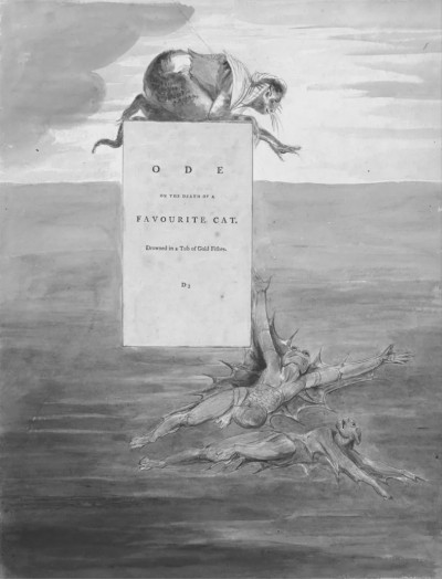 这事有种滑稽气质非常十八世纪。主人很哀痛,虽然痛得短,但是痛得真,于是请老友、伊顿和剑桥的多年同窗、也是他壮游欧陆时的陪伴——诗人托马斯·格雷为猫写篇墓志铭。结果交上来一首颇长的诗,名叫《溺毙于金鱼缸内的爱猫之死颂》,比这位诗人最著名的《乡村墓园挽歌》还有风味。格雷一生诗作不多,只得十几首。他出身商人家庭,父亲是放债人兼汇兑掮客,有半疯子和家暴之嫌,母亲经营女帽店。如此背景却要结交首相之子,这份友谊的艰难别扭不难想象。格雷身世中的另一个痛点是他是十二个兄弟姐妹中的唯一幸存者——可叹十八世纪婴幼儿死亡率之高。沃波尔评价这位羞涩内向、渴望疏离的诗人朋友“是这世上最糟糕的伙伴,原因就在于他的忧郁独居,过分自尊。此人从来交谈不易,一切字词都要先经拣选掂量,才能组织成句。其文令人钦佩,其人却使人不悦”。
