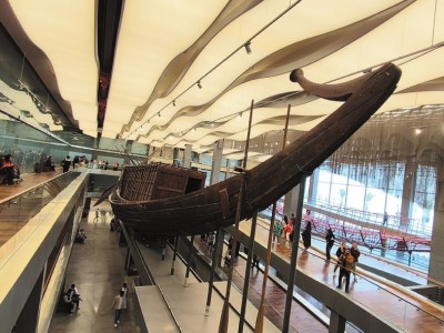 如今,太阳船作为弥足珍贵的文物,静静诉说着古埃及人精湛的造船技艺与深邃的生死观。凝视它,我仿佛听到尼罗河古老的波涛和信仰的低吟,看见法老的灵魂乘着霞光,在天地间进行永恒的巡游和轮回。